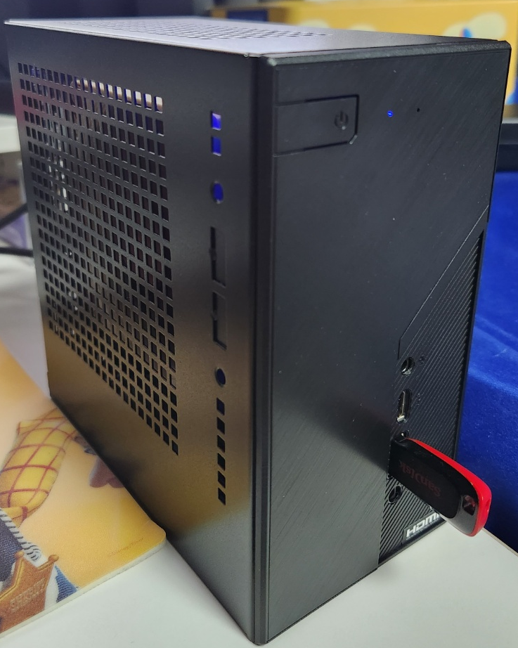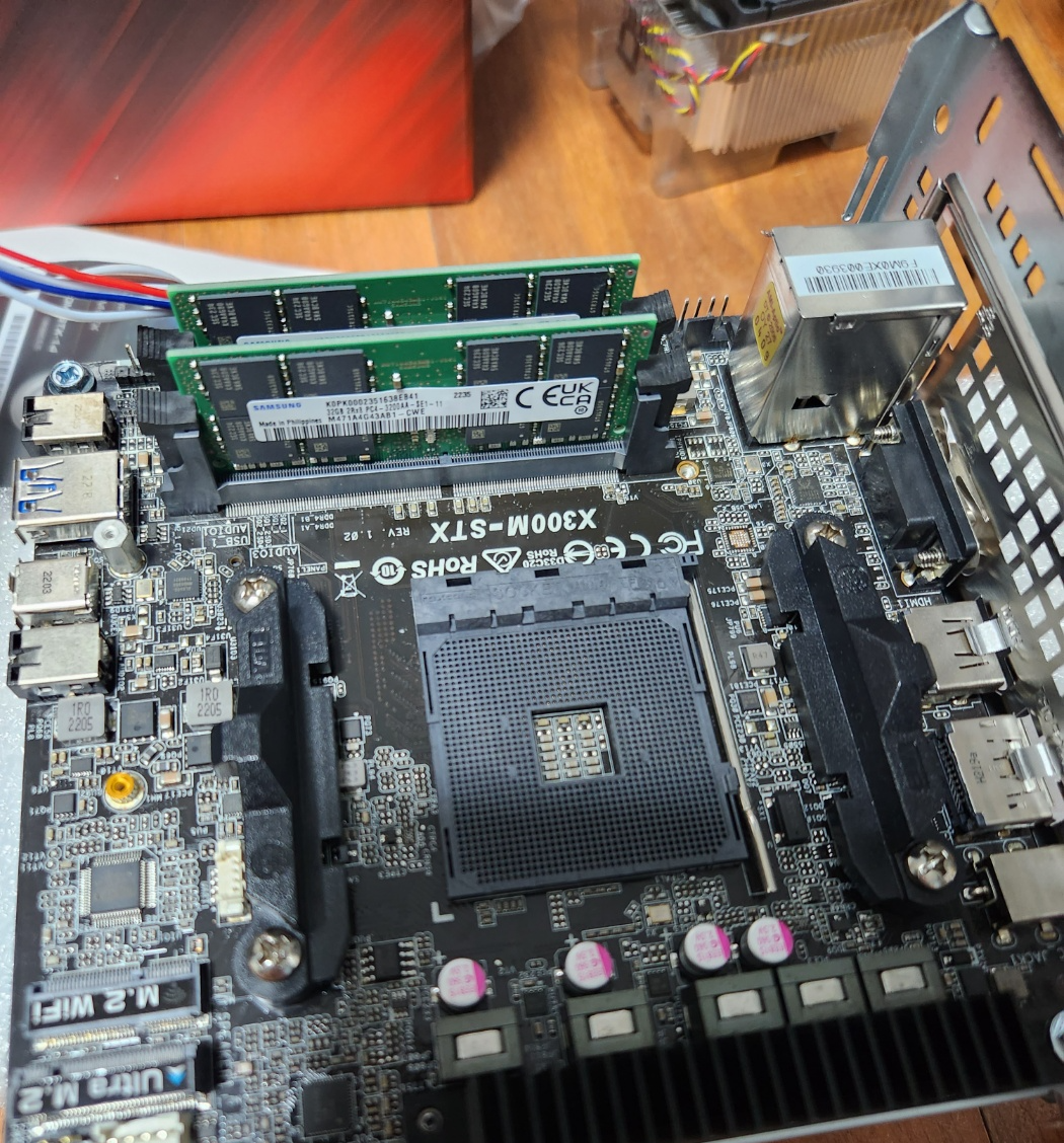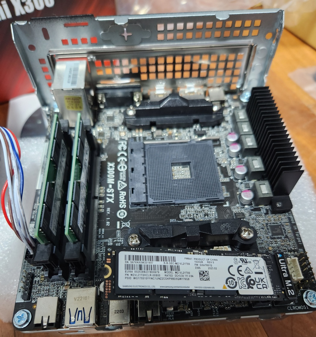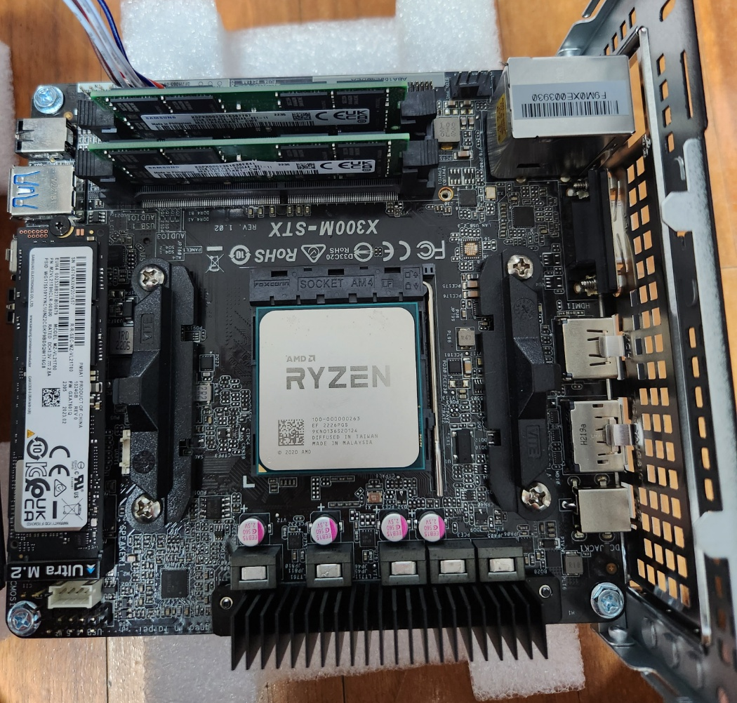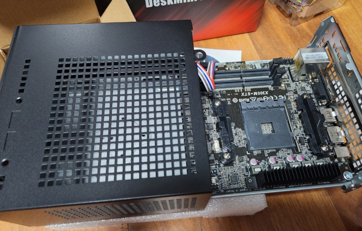 ASRock DeskMini X300 ์ ๋๋ค. ํ์์ ๋ฉ์ธ๋ณด๋์ ๊ฐ์ด ๊ตฌ์ฑ๋์ด์์ต๋๋ค.