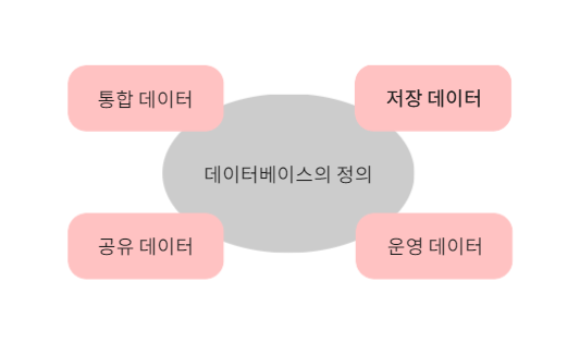 λ°μ΄ν°λ² μ΄μ€ νμ€λ‘ μμ½νμλ©΄ μ¬λ¬ μ¬μ©μκ° '곡μ 'νμ¬ μ¬μ©ν μ μλλ‘ 'ν΅ν©'ν΄μ 'μ μ₯'ν 'μ΄μ' λ°μ΄ν°μ μ§ν©μ΄λΌκ³ ν μ μλ€.