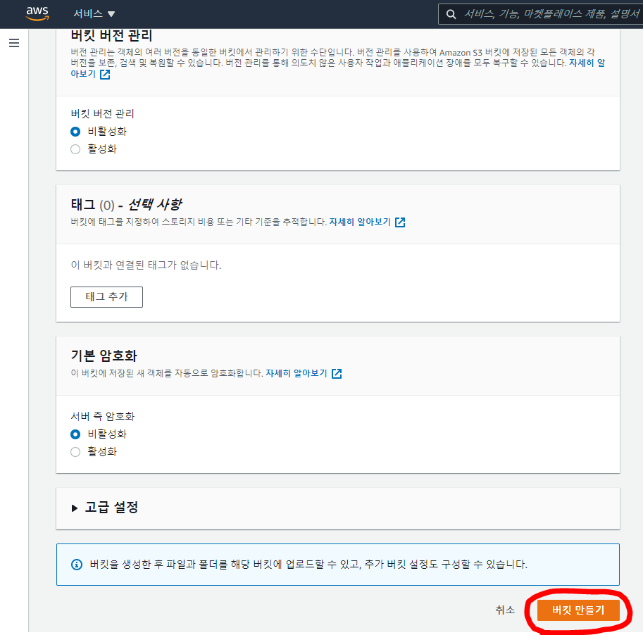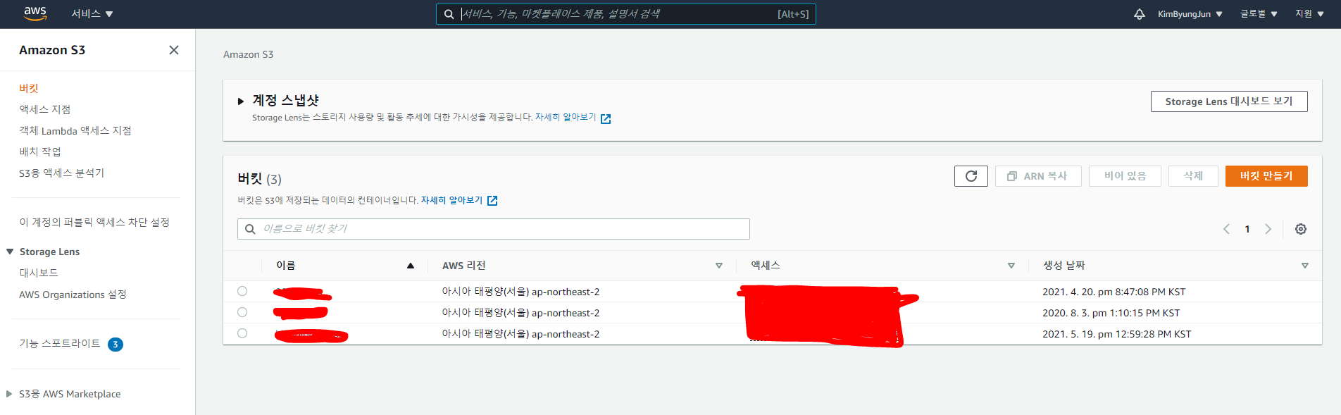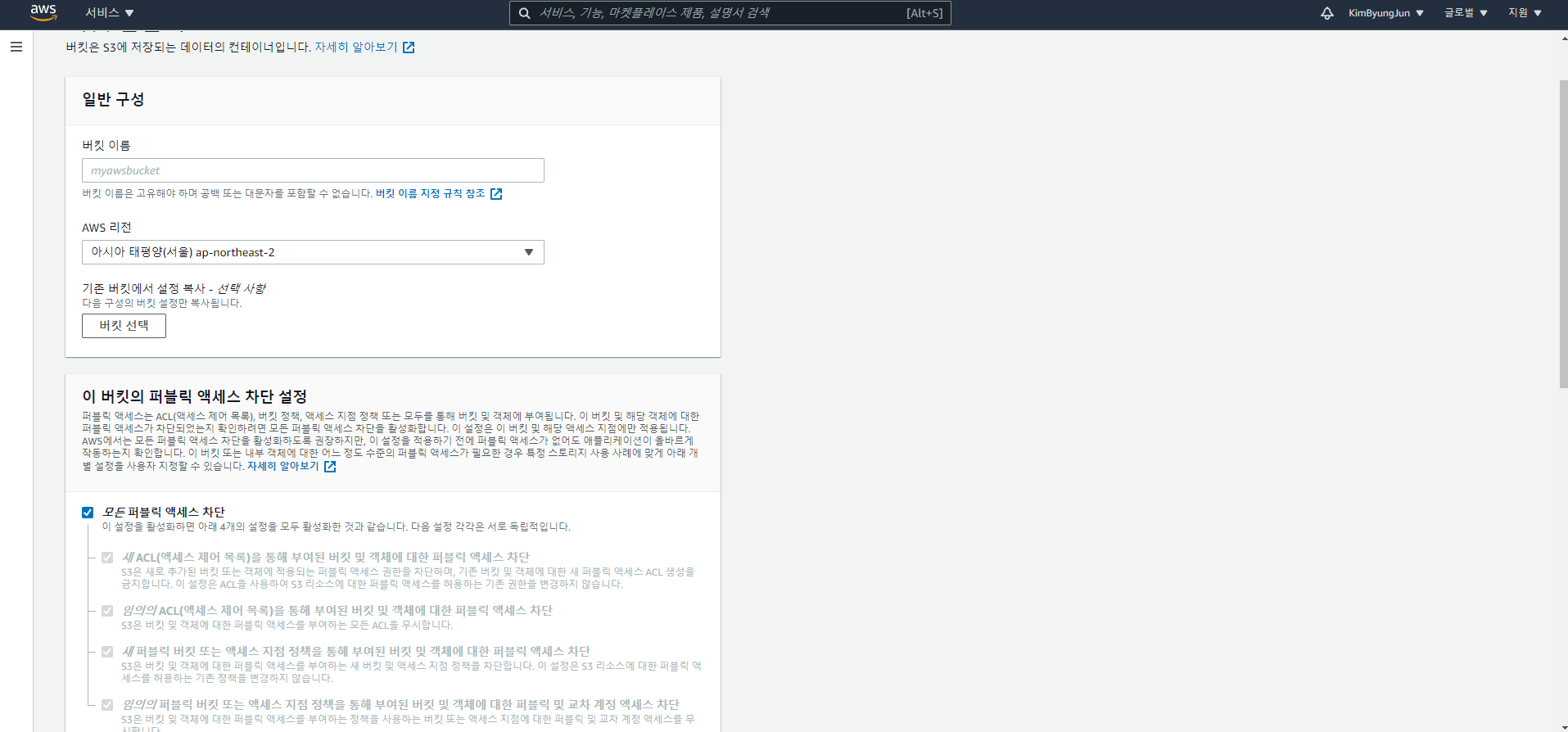 S3 ๋์๋ณด๋๋ก ์์ ์ค๋ฅธ์ชฝ ๋ฒํท ๋ง๋ค๊ธฐ๋ฅผ ๋๋ฌ์ค๋๋ค.