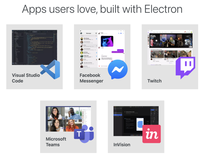 ๊ฒฐ๊ตญ Eletron์ ๋ฐ์คํฌํ ๊ฐ๋ฐ ์์ฅ์์ ๊ฒฝ์์๋ค์ ๋ฌผ๋ฆฌ์น ์ ์์๊ณ , Microsoft, Facebook, Twitch, Slack, Discord, Skype, WhatsApp ๋ฑ ํฐ ๊ท๋ชจ์ ์๋น์ค๋ค์ด Electron์ ๊ธฐ๋ฐ์ผ๋ก ๋ฐ์คํฌํ ์ฑ์ ์ ์ํ๊ฒ ๋์์ต๋๋ค.