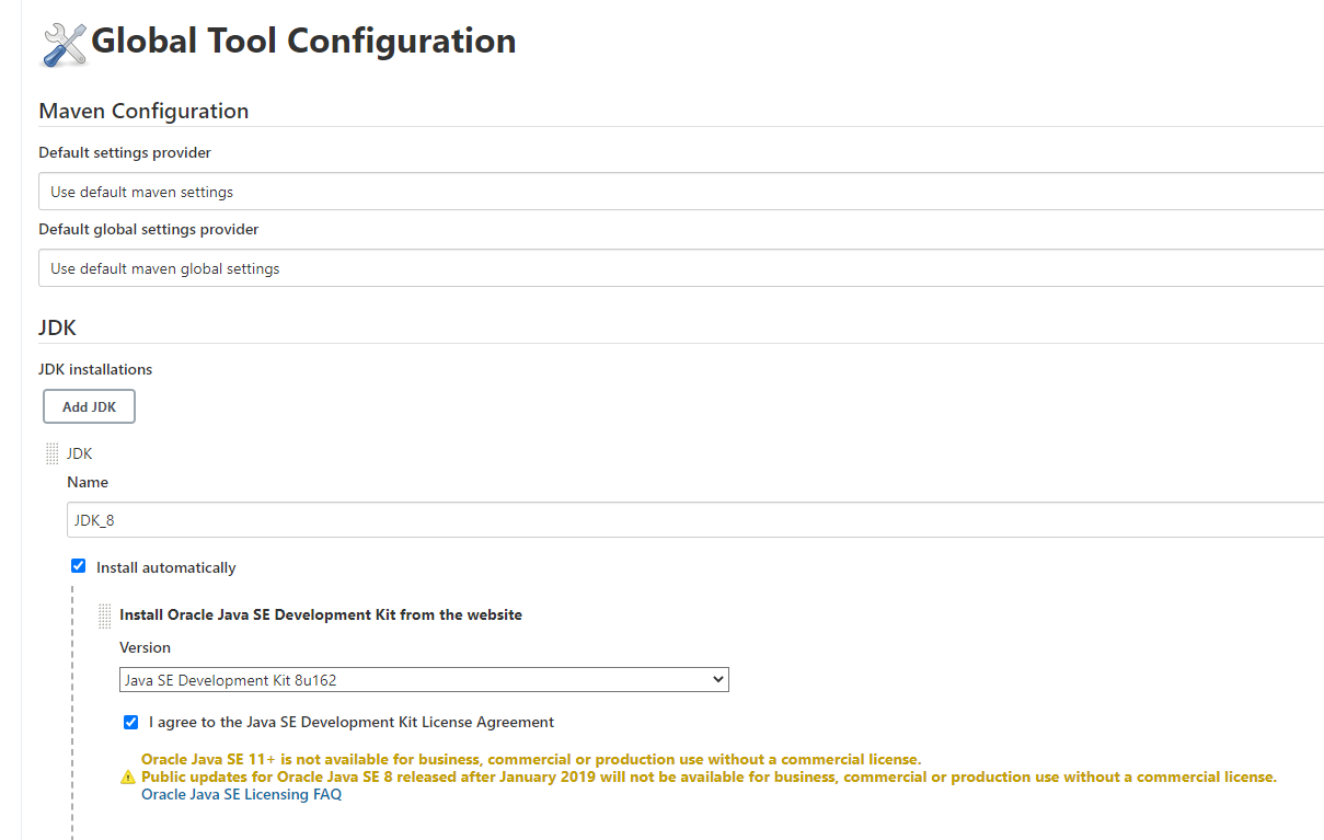 ์ General์์ JDK ์ค์ ํ ๊ฒ ๋ง์ฐฌ๊ฐ์ง๋ก Global Tool Configuration์์ ์ค์ ํ ๊ฒ์ ์ฌ์ฉํ ์ ์์ต๋๋ค.