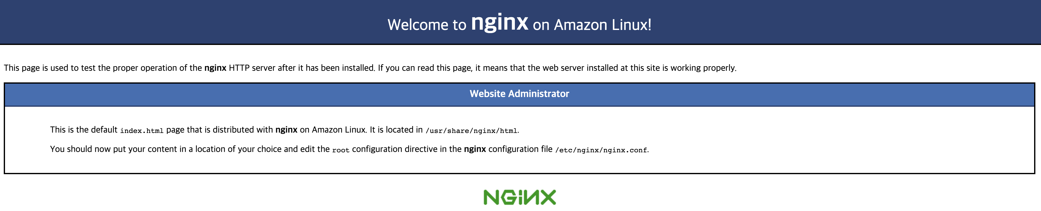 ํด๋น ํ๋ฉด์ด ๋์ค๋ฉด Amazon linux 2์ nginx ์ค์น๋ ๋์ด ๋ฌ์ต๋๋ค.