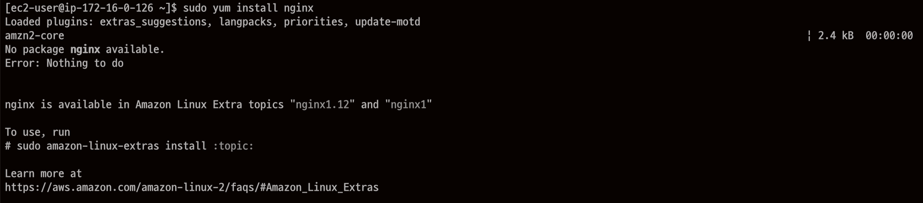 sudo amazon-linux-extras install -y nginx1