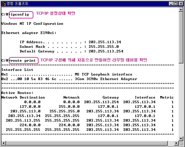 TCP/IP μ€μ νμΈμ ipconfig μ μ΄μ©νκ³ , λΌμ°ν