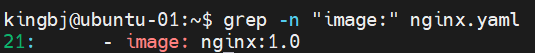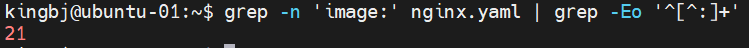 $ grep -n 'image:' nginx.yaml | grep -Eo '^[^:]+'