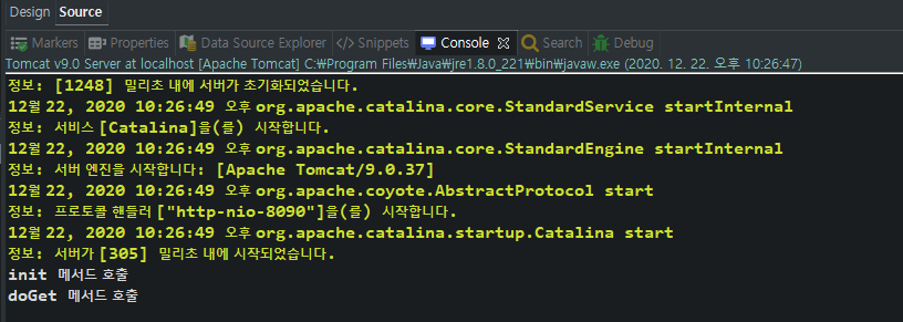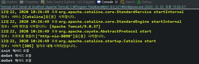 κ·Έλ¦¬κ³ λ§μ½ μλ²λ₯Ό μ’ λ£νμ§ μμ μνμμ νλ² λ μμ²μ νλ©΄ init λ©μλλ νΈμΆμ΄ μλκ³ doGet λ©μλλ§ νΈμΆμ΄ λ©λλ€.