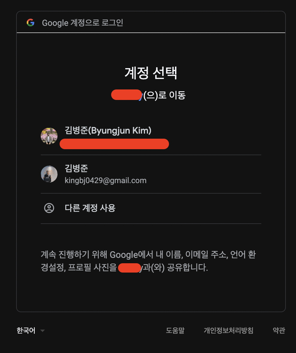 1. http://localhost:8080/oauth2/authorization/google ๋ก ์ ์ ํ, ๊ณ์ ์ ์ ํํฉ๋๋ค.