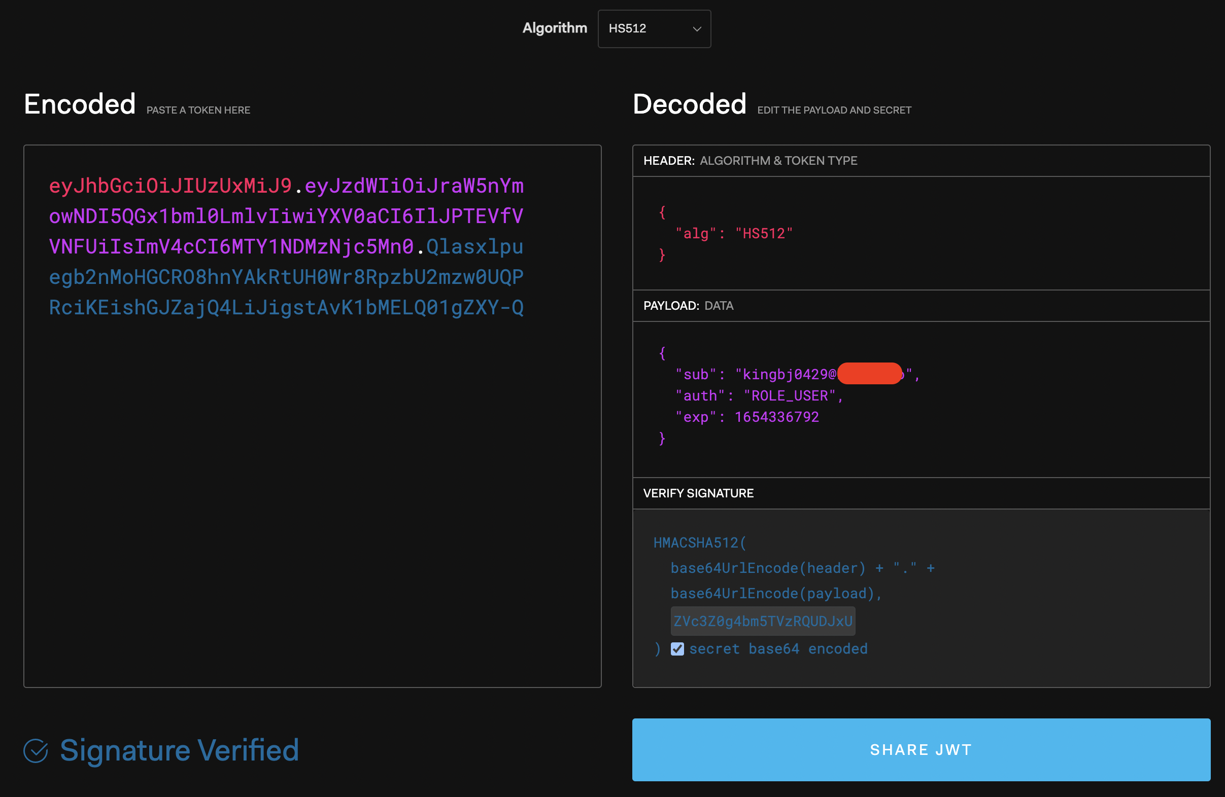 3. https://jwt.io/ ์์ ํ์ธํด๋ด ๋๋ค.