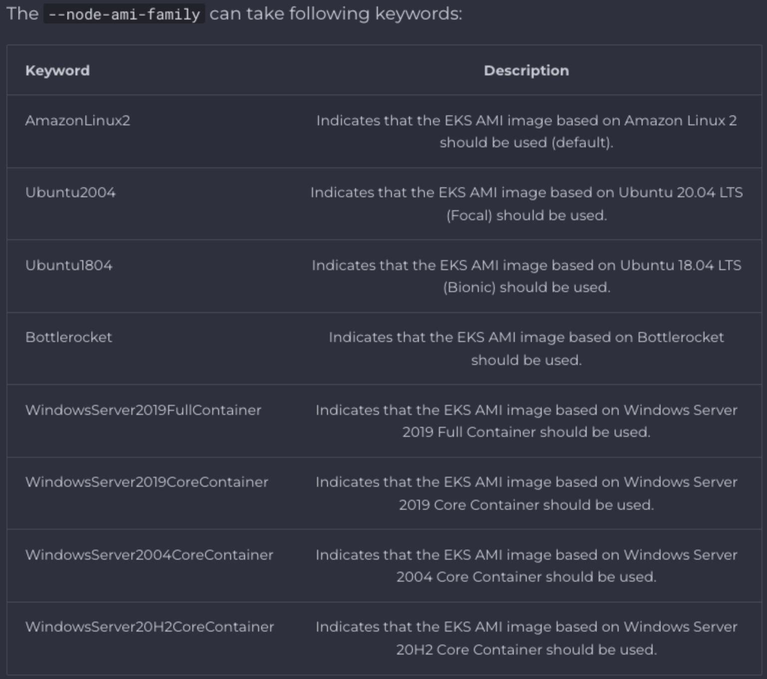 amiFamily: AmazonLinux2
