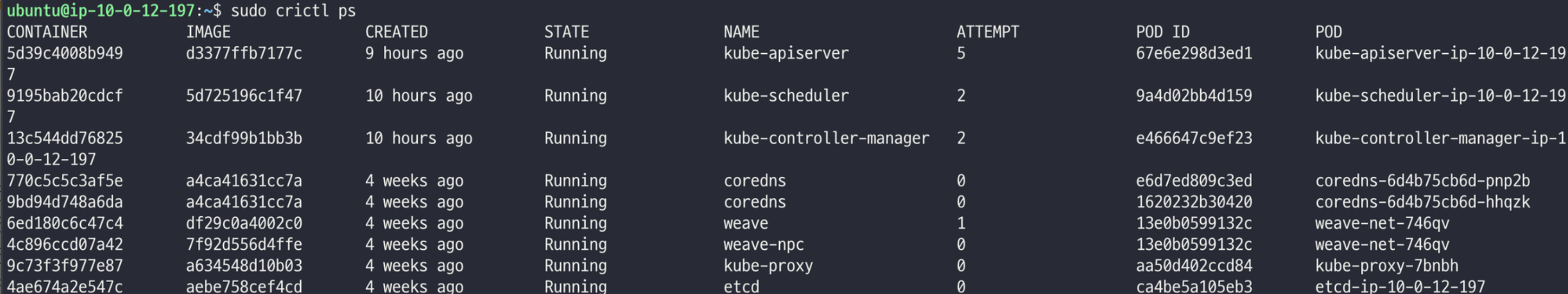 sudo crictl ps