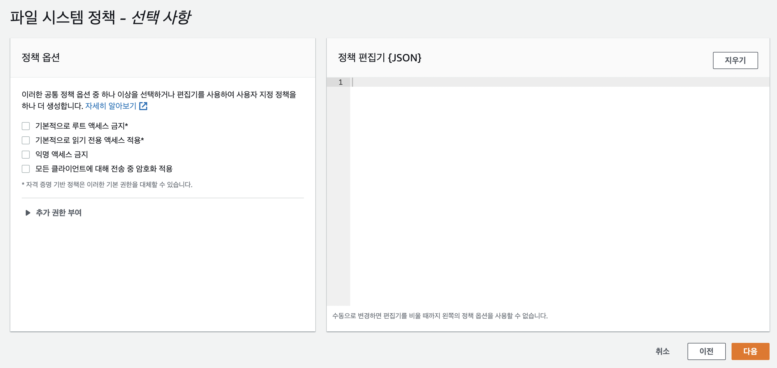 EFS (Elastic File System) ์ AWS ์ ํ์ผ ์์คํ ์๋น์ค์ ๋๋ค.