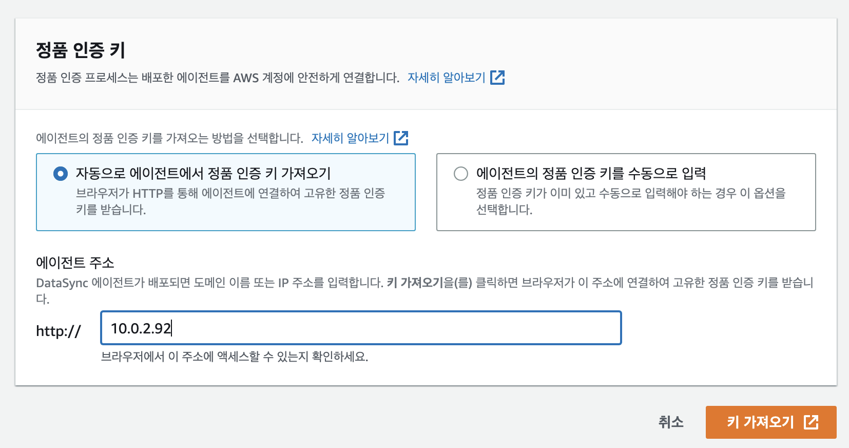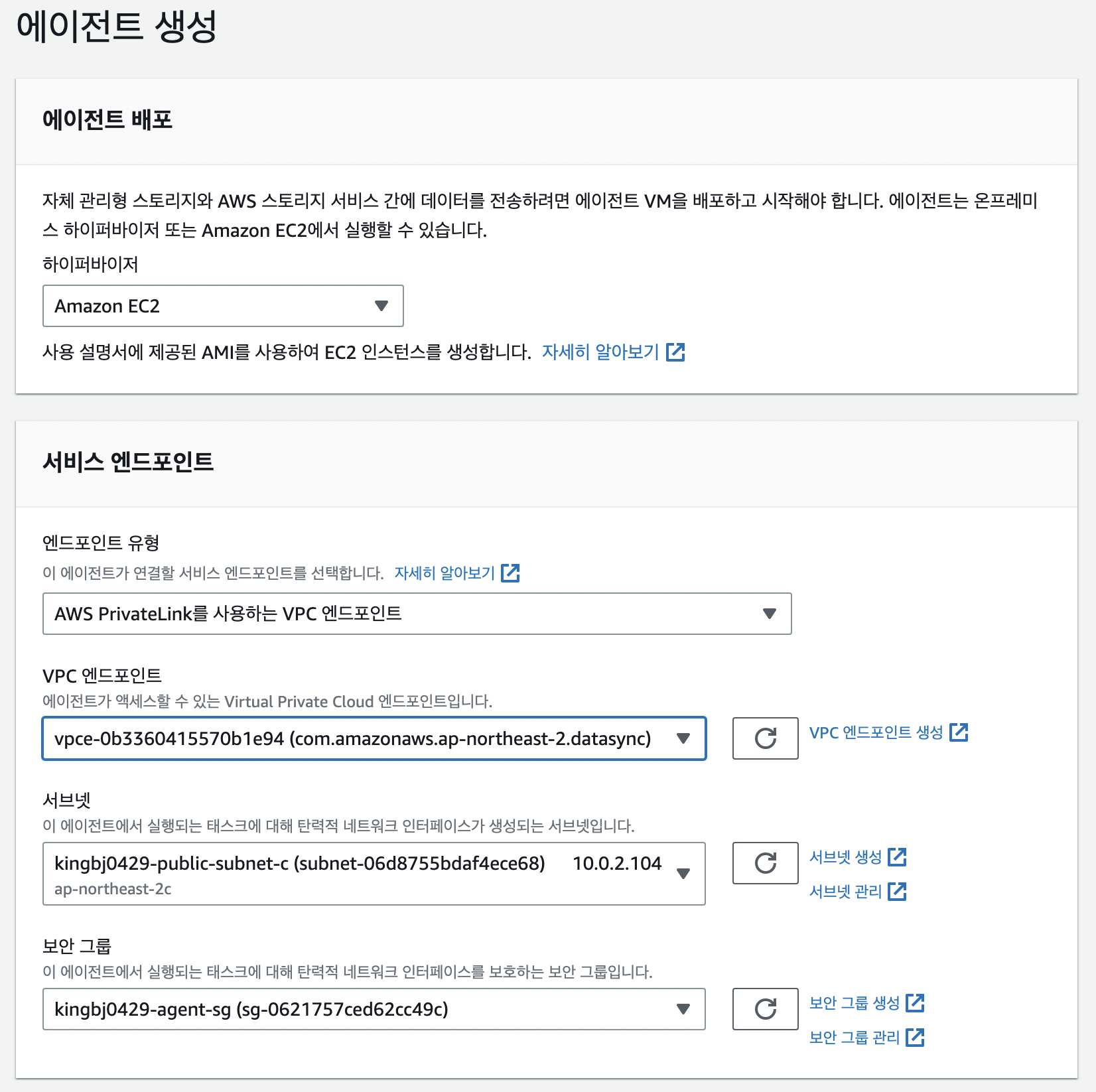 ๋์ผํ VPC ๋ด EFS B ์์ฑ ํ DataSync ์ ์ฌ์ฉํ Agent ์์ฑ