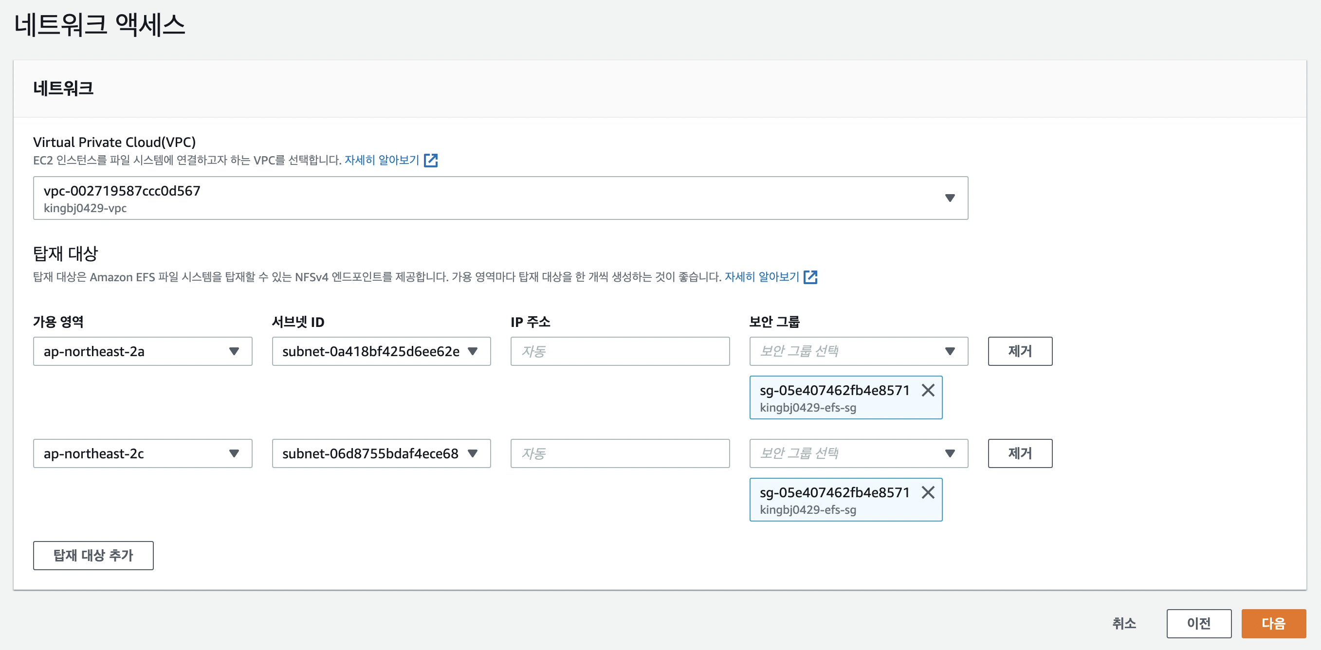 ๊ทธ๋ผ EFS B ๋ ๋ง์ฐฌ๊ฐ์ง๋ก EC2 ์ ๋ง์ดํธํฉ๋๋ค.