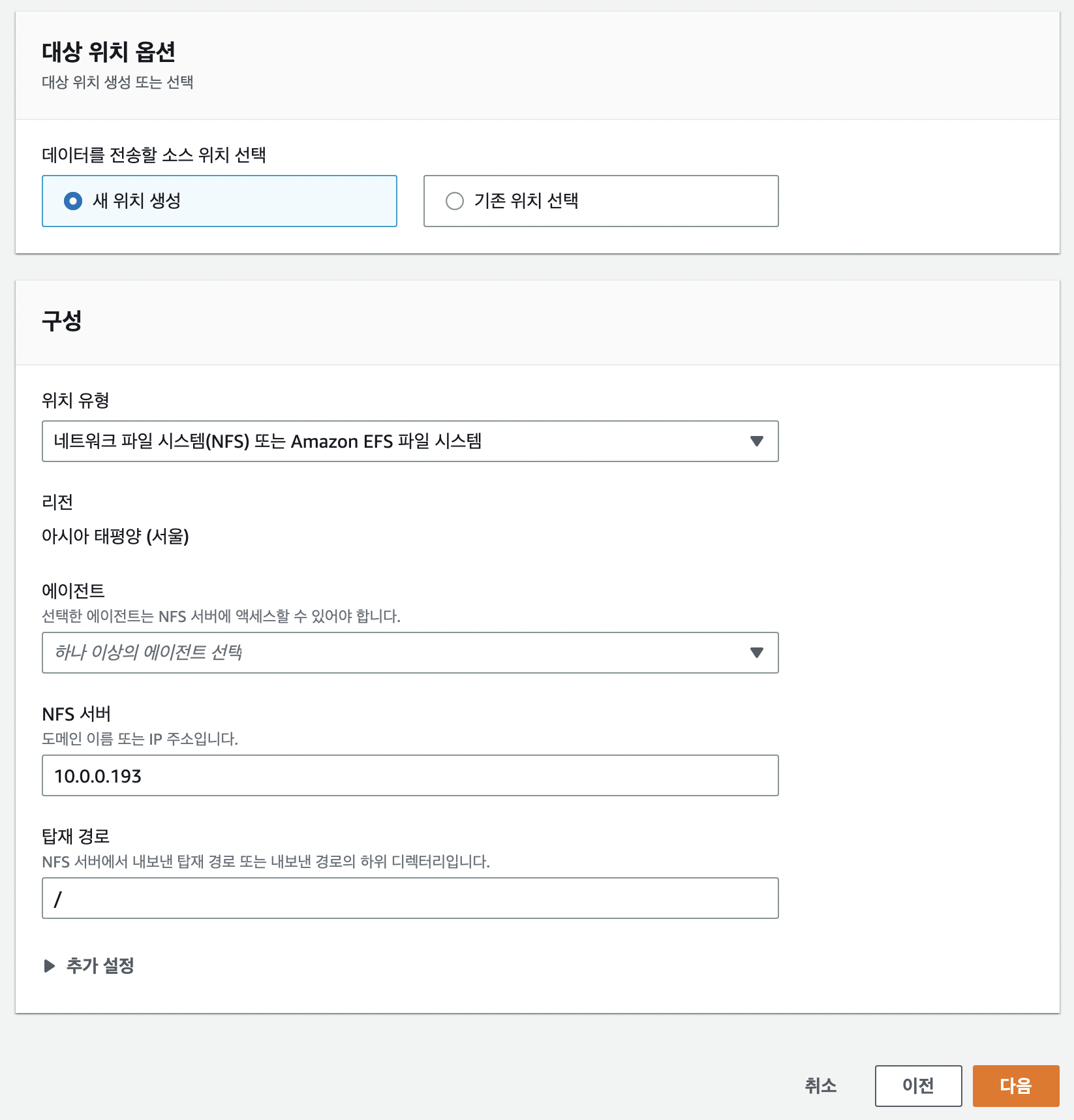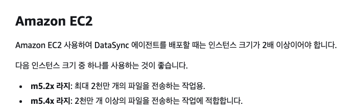 ์ด๋ฒ ๊ธ์์ rsync ๋ฅผ ๋์ ํ์ฌ datasync ๋ฅผ ์ด์ฉํ์ฌ ์คํ ๋ฆฌ์ง ๊ฐ ๋ฐ์ดํฐ ์ด์ ํ๋ ๋ฐฉ๋ฒ์ ์์๋ณด์์ต๋๋ค.