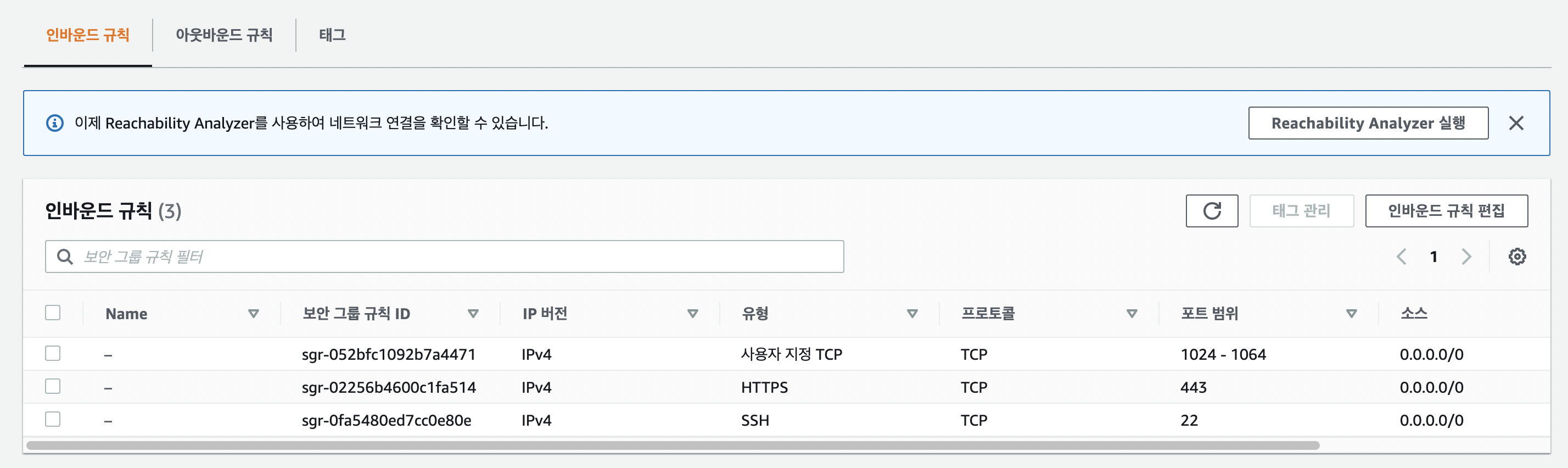 โ ๋ฐ๋์ ๋ณด์ ๊ทธ๋ฃน์ ์ธ๋ฐ์ด๋ ๊ท์น 2049 ํฌํธ๋ฅผ ์ง์ ํด์ค๋๋ค. ๋ณดํต NFS ๊ฐ์ ๊ฒฝ์ฐ 2049 ํฌํธ๋ฅผ ์ฌ์ฉํ๋ ๋ฐ EFS ๋ ๋ง์ฐฌ๊ฐ์ง์ ๋๋ค