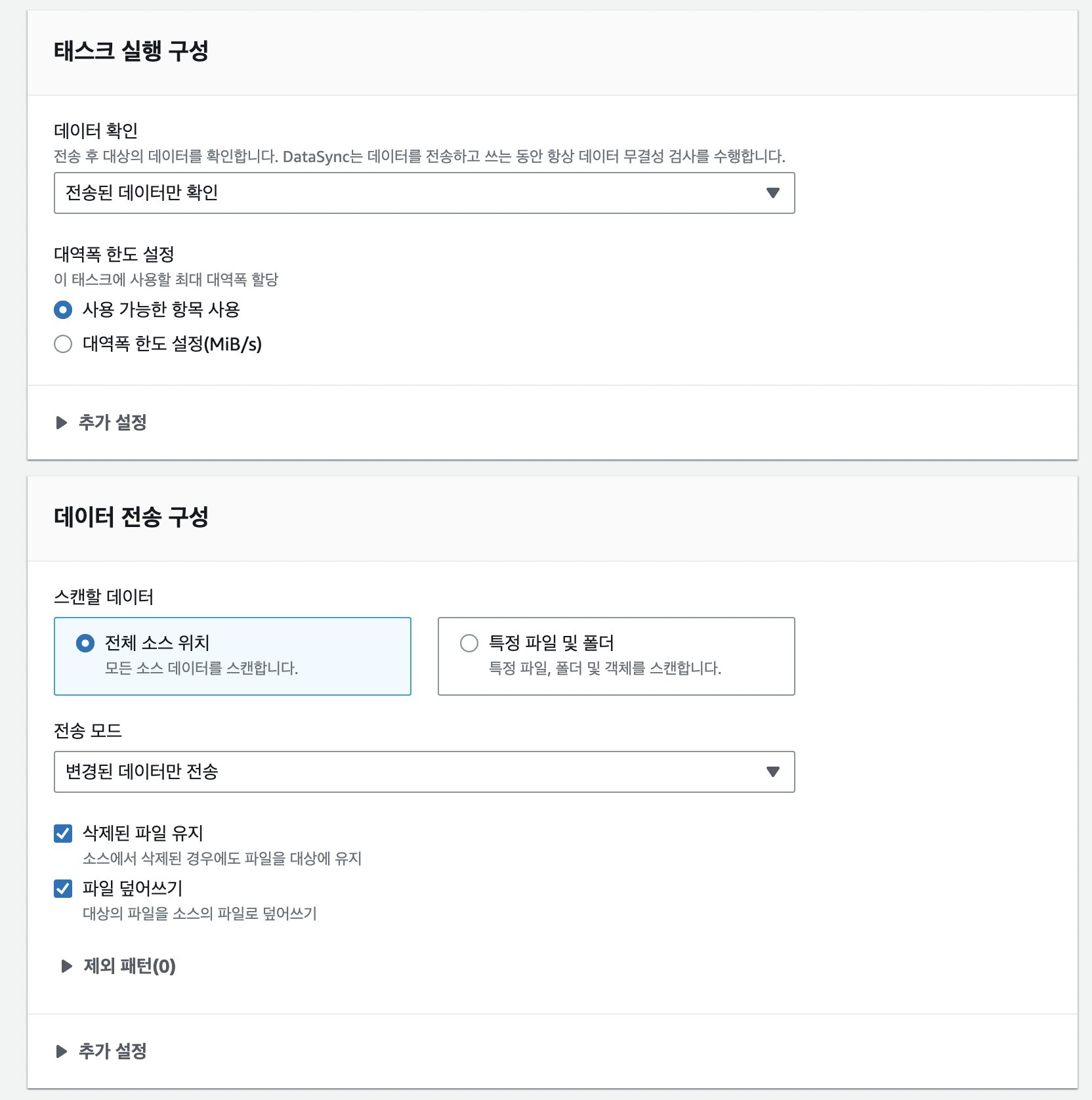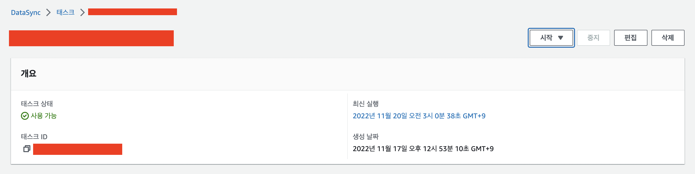 - DataSync ํ์คํฌ ์์ฑ ํ ๋ฐ์ดํฐ ์ด์