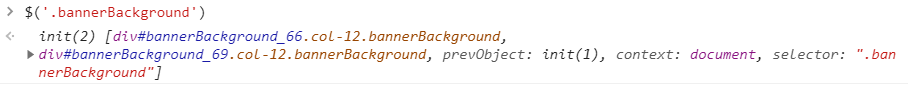init(2)์ 2๋ผ๋ ์ซ์๊ฐ ์ ์ด์ฟผ๋ฆฌ ์ ํ์๊ฐ ๊ฐ์ ธ์จ ํ๊ทธ์ ๊ฐฏ์๋ฅผ ์๊ธฐํฉ๋๋ค. ์ฌ์ฉ๋ DOM์ bannerBackground ํด๋์ค๋ฅผ ๊ฐ์ง ํ๊ทธ๋ 2๊ฐ๊ฐ ์๋ค๋ ๊ฒ์ด์ง์.
