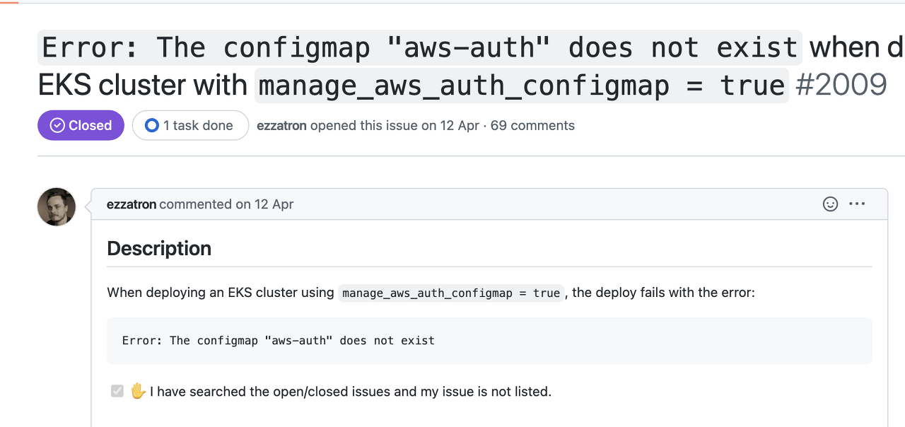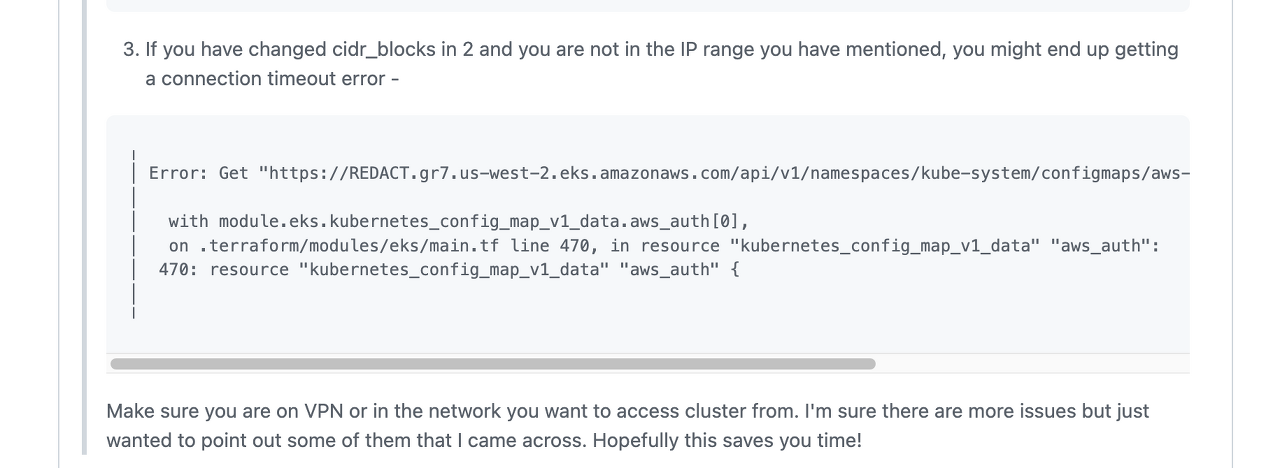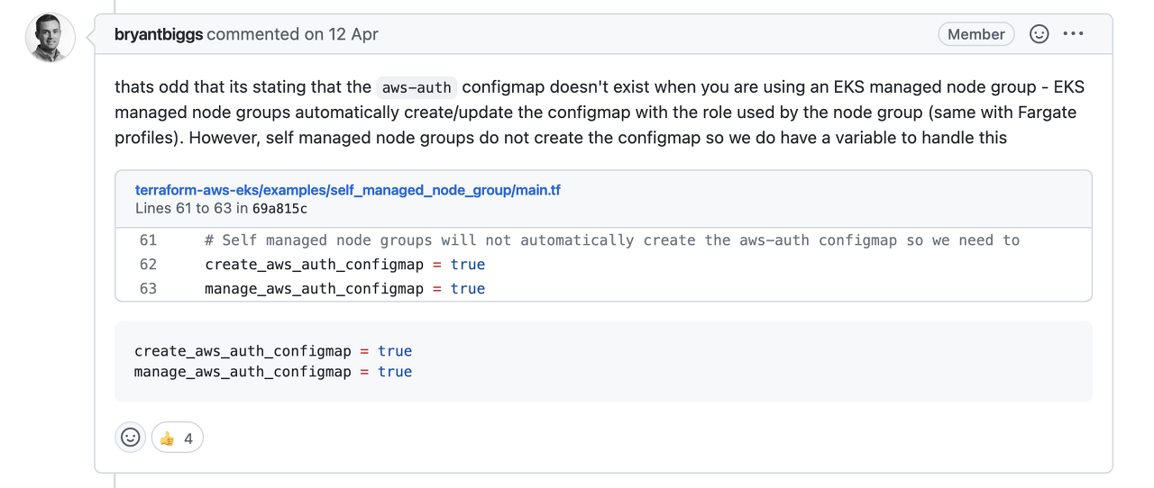 ์~ create_aws_auth_configmap = true ๋ฅผ ์ถ๊ฐํด์ผ ํ๋๊ตฐ์?