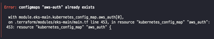 create_aws_auth_configmap ์ต์ ์ ๋ค์ ํ๋ฒ aws-auth ์์ฌํจ์ผ๋ก์จ ์ค๋ณต ์๋ฌ๊ฐ ๋ฐ์ํ๋ ๊ฑธ ํ์ธํ ์ ์์ต๋๋ค.