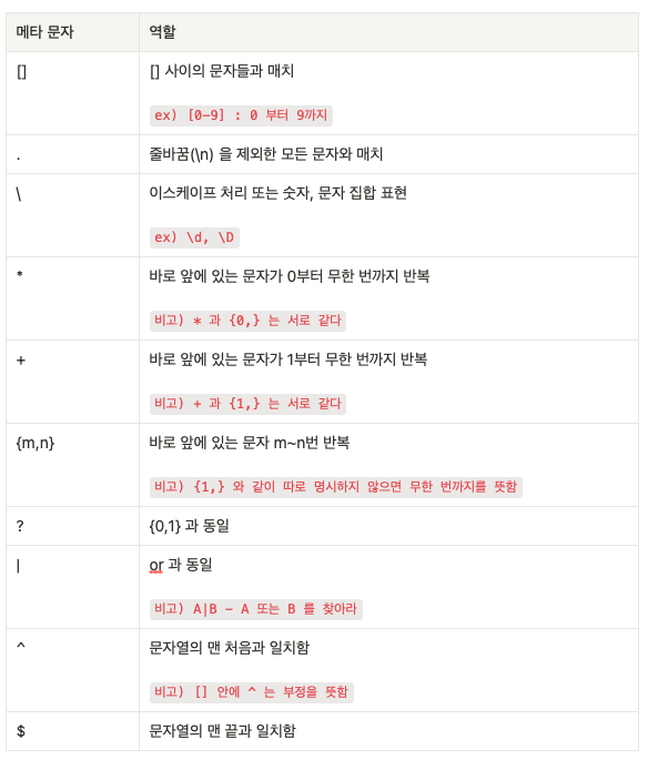 ๊ทธ ์ ์ ์ ๊ท์์๋ "[].\*" ์ ๊ฐ์ ๋ฉํ ๋ฌธ์๊ฐ ์กด์ฌํ๋๋ฐ ๊ฐ ๋ฉํ๋ฌธ์๋ฅผ ๋ฌด์์ ์๋ฏธํ๋์ง ์ดํด๋ณด๊ฒ ์ต๋๋ค.
