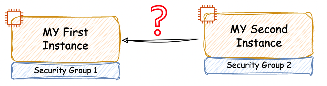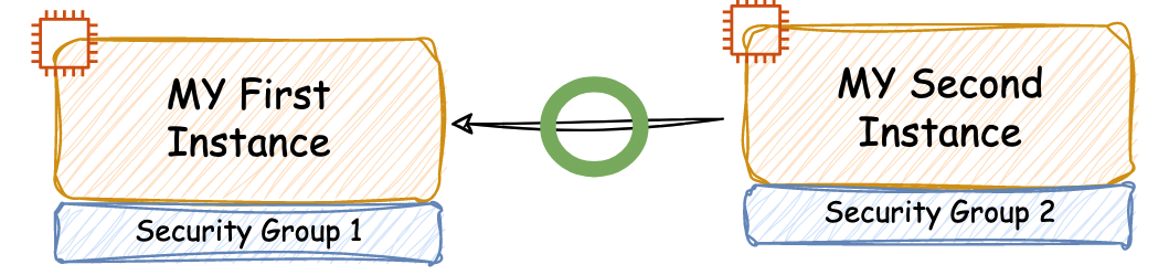 My Second Instance ์๋ Security Group 2 ๊ฐ ํ ๋น๋์๊ณ , Security Group 1 ์ ์์ค๋ Security Group 2 ๋ฅผ ๊ฐ๋ฅดํค๊ณ ์์ต๋๋ค.