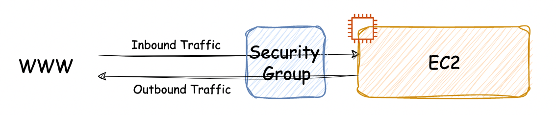 EC2 ์ธ์คํด์ค์๋ ๋ณด์ ๊ทธ๋ฃน์ ์ค์ ํ์ฌ ํน์ ํธ๋ํฝ๋ง ์ธ๋ฐ์ด๋, ์์๋ฐ์ด๋๋ฅผ ํ์ฉํ ์ ์์ต๋๋ค.