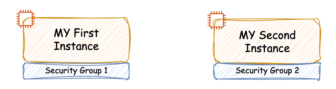 My First Instance ๋ Security Group 1 ์ ๋ณด์ ๊ทธ๋ฃน์ ๊ฐ์ง๊ณ ์๊ณ , My Second Instance ๋ Security Group 2 ์ ๋ณด์ ๊ทธ๋ฃน์ ๊ฐ์ง๊ณ ์์ต๋๋ค.
