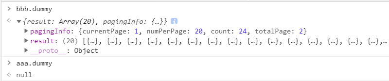 bbb.dummyλ κ°μ΄ μ λλ‘ μΆλ ₯λμ§λ§ aaa.dummyλ nullμ΄ μΆλ ₯λκ²μ λ³Ό μ μμ΅λλ€. μ΄μ λ₯Ό μμκ² λμ?