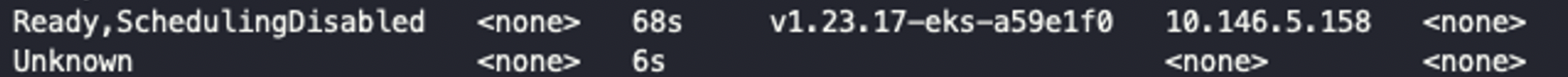 ์๋ ์ด๋ฏธ์ง๋ ์๋์ผ๋ก ์ข ๋ฃ๋๋ ๋ ธ๋๋ฅผ ๋ณด์ฌ์ค๋๋ค. ์ํ๋ฅผ ๋ณด๋ฉด SchedulingDisabled ์ธ๋ฐ ์ด ๋ ธ๋๋ ์ข ๋ฃ๋๊ธฐ ๋๋ฌธ์ ๋ ์ด์ ํ๋๋ฅผ ์ค์ผ์ค๋ง ํ์ง ์๊ฒ ๋ค๋ ๊ฒ๋๋ค.