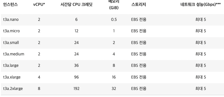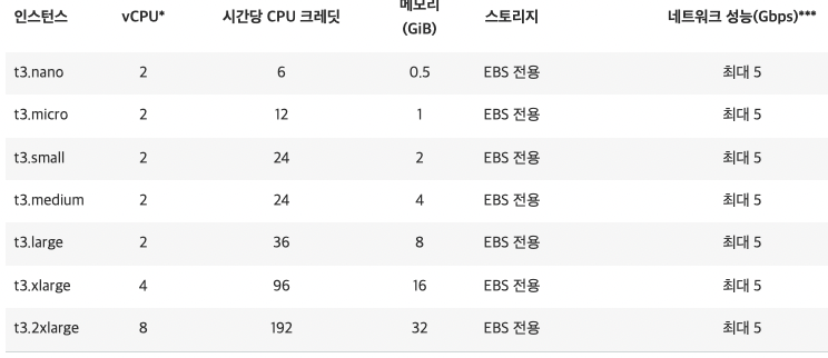 (t3.small, t3.medium ์ ์ง์ ํ๋ ๊ฒ์ด ์๋๊ณ t ๋ก ์์ํ๋ ๋ชจ๋ ์ธ์คํด์ค๊ฐ ๊ฐ๋ฅํจ)