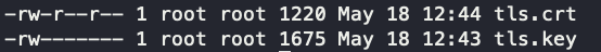TLS ๋ฅผ ์ ์ฉ ํ ๊ฒ์ด๊ธฐ ๋๋ฌธ์ ๊ฐ์ฅ ๋จผ์ ๊ฐ์ธํค(key)์ ์ธ์ฆ์(crt) ๋ฅผ ์์ฑํด์ค์๋ค.