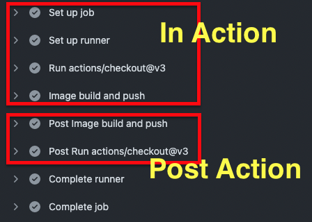 ์ ๋ ์ค์ง์ ์ธ ์์ ์ ์งํํ๋ ๊ฒ์ In Action ์ด๋ผ๊ณ ์ง์นญํ๊ณ , ์ดํ ํ์ฒ๋ฆฌํ๋ Action ์ Post Action ์ด๋ผ๊ณ ์ง์นญํฉ๋๋ค. ์ด ๊ฐ๋ ์ ์ค๋ช ํ๋ ์ด์ ๋ Action Cache ๊ฐ ๋ฐ๋ก ์ด๋ฐ Post Action ์ผ๋ก ์บ์๋ฅผ ์ ์ฅํ๊ฑฐ๋ ์บ์ ํํธ๋ฅผ ํด์ฃผ๊ธฐ ๋๋ฌธ์ด์ฃ .