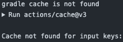 "gradle cache is not found" ๋ actions/setup-java@v3 ์์ cache: gradle ์ ์ฃผ์๊ธฐ ๋๋ฌธ์ ๋ณด์ฌ์ง๋ ๋ก๊ทธ์ ๋๋ค.