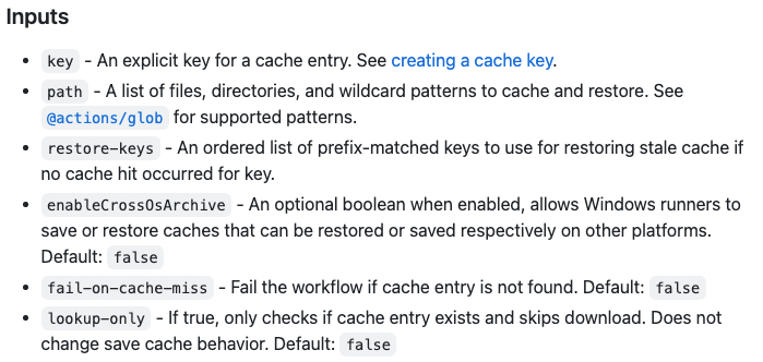 - restore-keys: restore ๋ฅผ ๋ชปํ์ ๊ฒฝ์ฐ ๋ค๋ฅธ ํค๋ฅผ ์ฌ์ฉํ๊ธฐ ์ํ ๋์ฒดํค