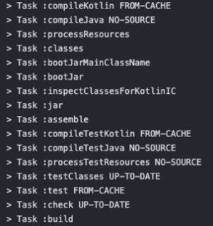 ๊ทธ๋ฆฌ๊ณ gradle build ๊ณผ์ ์์ ์ถ๋ ฅ๋๋ ๋ก๊ทธ ๋ํ FROM-CACHE ๋ผ๋ ๋ฌธ๊ตฌ๋ฅผ ๋ณด์ฌ์ฃผ๋ ๊ฒ์ ๋ณด๋ ์บ์ฑ ๋ฐ์ดํฐ๋ฅผ ์ด์ฉํด์ ๋น๋ ํ๋ ๊ฒ์ ์ ์ ์์ต๋๋ค.