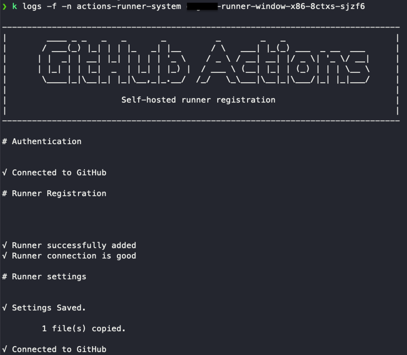 CMD [ "pwsh", "-c", "./config.cmd --name $env:RUNNER_NAME --url https://github.com/$env:RUNNER_ORG --runnergroup $env:RUNNER_GROUP --token $env:RUNNER_TOKEN --labels $env:RUNNER_LABELS --unattended --replace --ephemeral; ./run.cmd"]