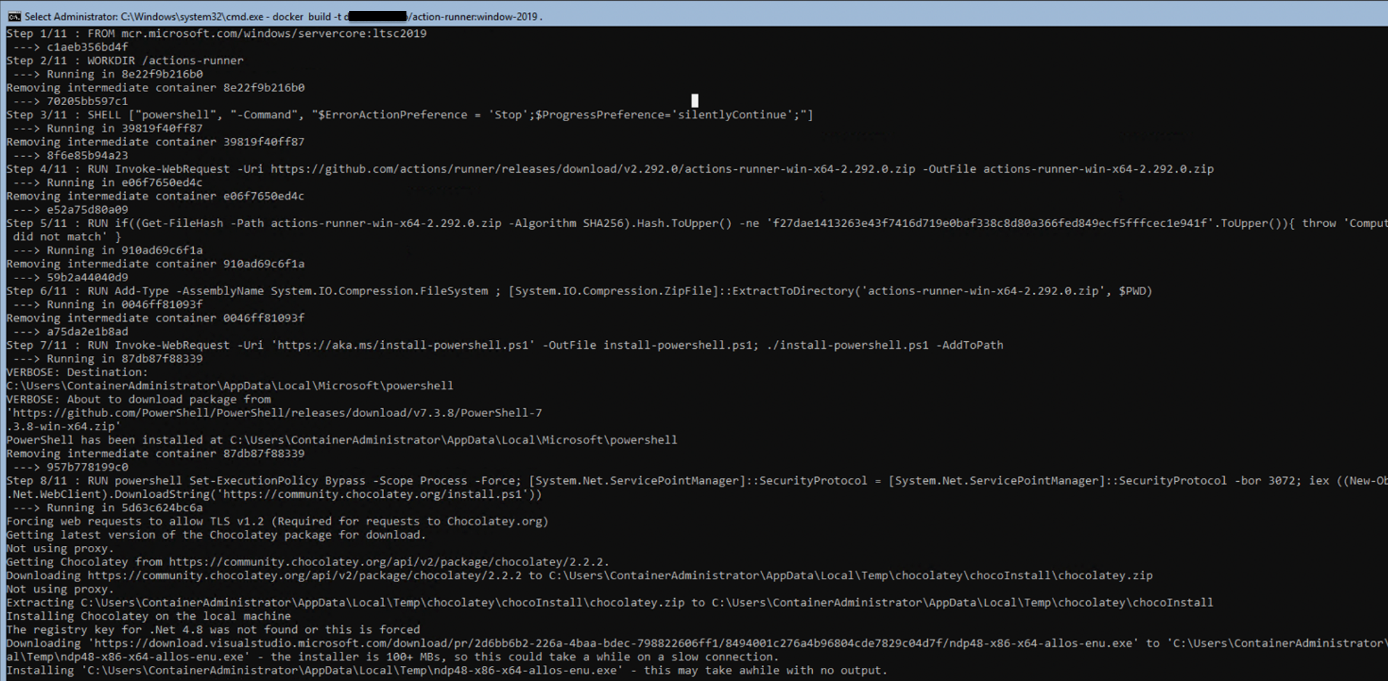 RUN if((Get-FileHash -Path actions-runner-win-x64-2.292.0.zip -Algorithm SHA256).Hash.ToUpper() -ne 'f27dae1413263e43f7416d719e0baf338c8d80a366fed849ecf5fffcec1e941f'.ToUpper()){ throw 'Computed checksum did not match' }