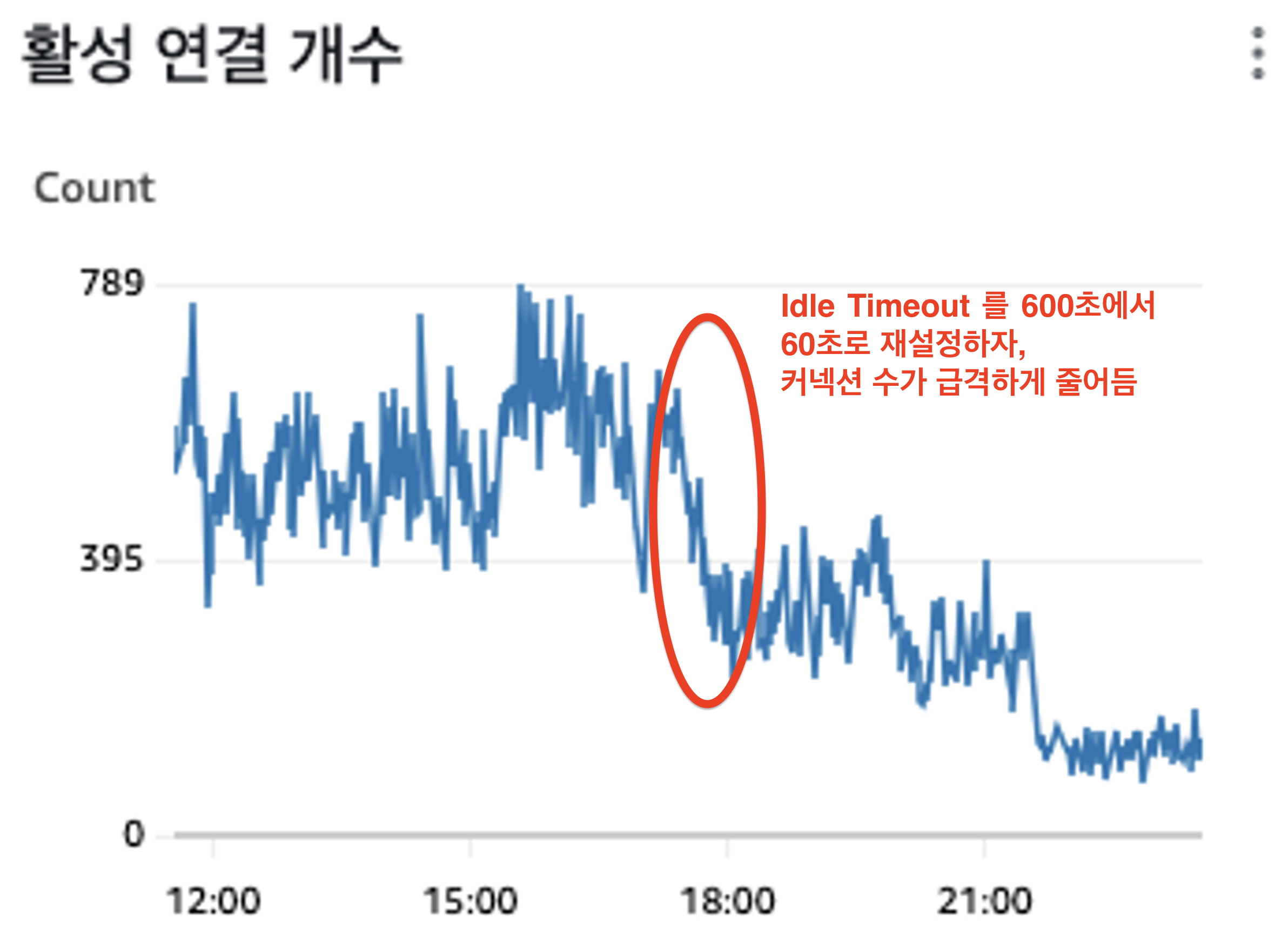๊ทธ๋ฆฌ๊ณ ๋ง์นจ ์ ๊ฐ ์ฌ์ฉํ๋ AWS ALB ๊ฐ์ ๊ฒฝ์ฐ์๋ Idle Timeout ์ 600์ด๋ก ํด๋จ์๋๋ฐ, ์ด๊ฒ ๋๋ฌด ๊ธธ์ด์ ์ปค๋ฅ์ ์๊ฐ ๋ฌด์๋ฏธํ๊ฒ ๋์ด๋๊ณ , ๊ทธ๋งํผ AWS ALB ์ ๋ถํ๊ฐ ๊ฑธ๋ ค ์๋ฌ๊ฐ ๋ฐ์ํ๋ค๊ณ ์๊ฐํ์ต๋๋ค. ๊ทธ์ ๋ฐ๋ผ Idle Timeout ์ 60์ด๋ก ์ฌ์ค์ ํ์ฃ .
