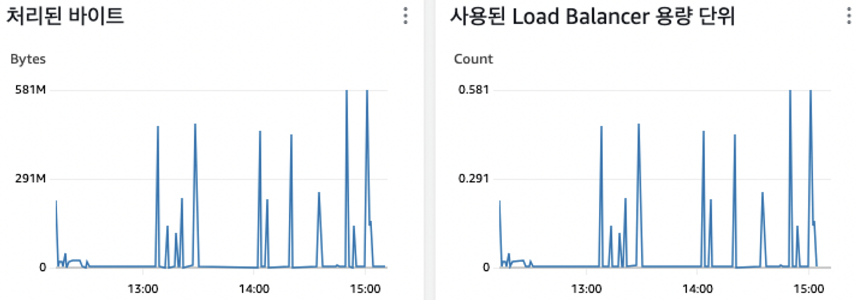 ํ์ฌ ์ฌ์ฉํ๊ณ ์๋ AWS ALB ์ ๋ชจ๋ํฐ๋ง ์ ๋๋ค. ์ด๋ฏธ์ง 3๊ฐ๋ง ๊ฐ์ ธ์๋๋ฐ, ํ์คํ ์คํํฌ๊ฐ ํ๋ ๋ถ๋ถ์ด ์กด์ฌํฉ๋๋ค. ELB 5XXs ๋ถ๋ถ๋ 0 ์ด ์๋ ๊ฒ์ ํ์ธํ ์ ์์ฃ .