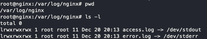 access.log ์ error.log ๊ฐ ๊ฐ stdout, stderr ์ ์ํํธ ๋งํฌ ๋์ด ์์ต๋๋ค.