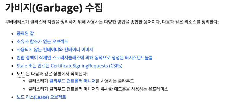 ๊ฐ๋น์ง ์ปฌ๋ ํฐ๋ Kubelet ์ ๋ด์ฅ๋์ด Kubelet ์ด ์คํ๋๊ณ ์๋ ๋ ธ๋์์ ์ด๋ฏธ ์ฌ์ฉ๋๊ณ ์์ต๋๋ค. ์ฟ ๋ฒ๋คํฐ์ค์์์ ๊ฐ๋น์ง๋ผ ํ๋ฉด ์ข ๋ฃ๋ ์ก, ๊ณ ์ ์ค๋ธ์ ํธ, ์ฌ์ฉ๋์ง ์๋ ์ปจํ ์ด๋์ ์ปจํ ์ด๋ ์ด๋ฏธ์ง, ๋ณผ๋ฅจ ๋ฑ์ด ์์ต๋๋ค.