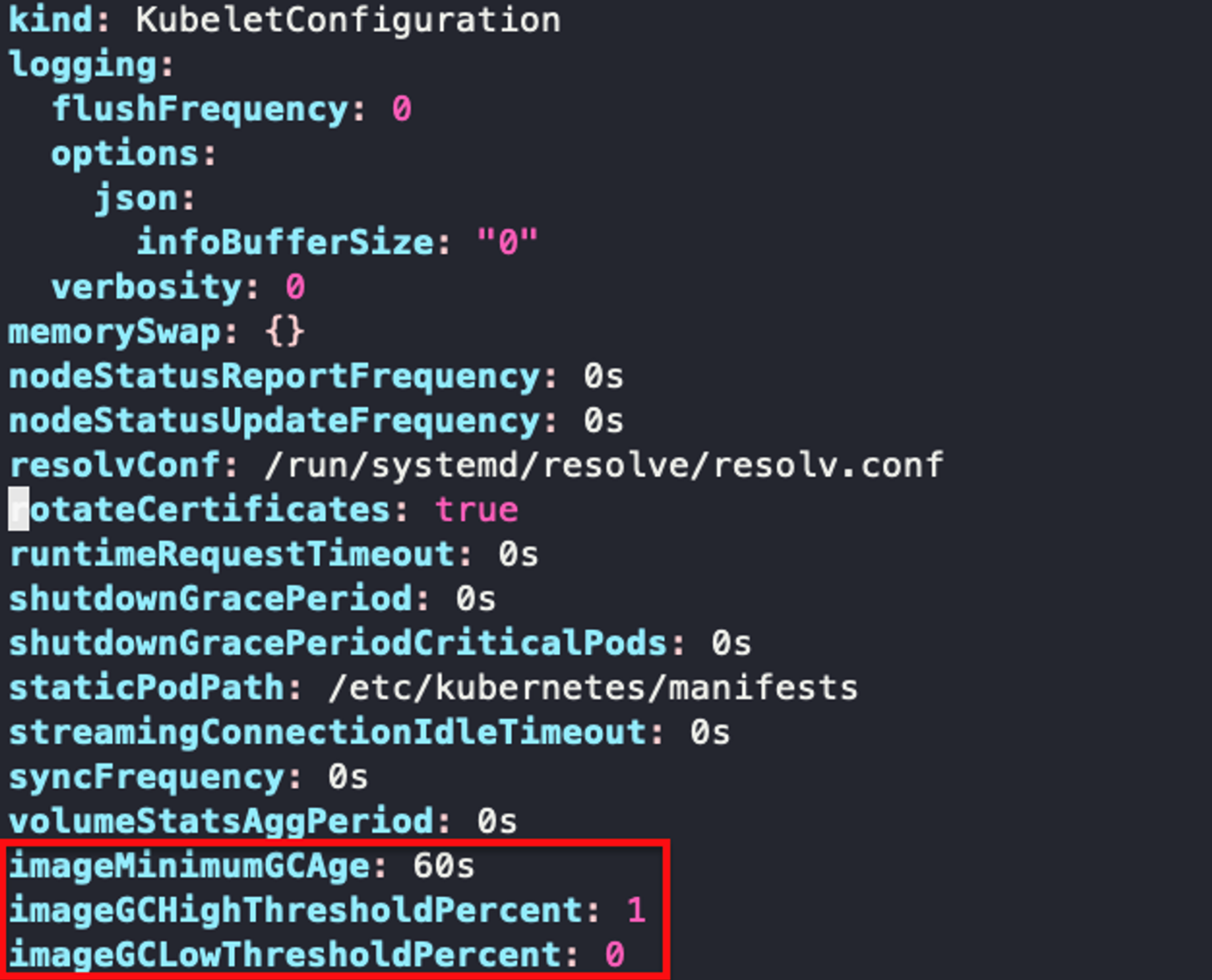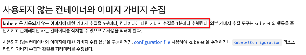 ๊ทธ๋ฐ๋ฐ ๋ฌธ์ ๋ 5๋ถ์ด ์ง๋๋ ์ฌ์ฉ๋์ง ์๋ ์ด๋ฏธ์ง๋ ๊ทธ๋๋ก ๋จ์ ์์์ต๋๋ค. ๊ทธ๋์ ํ๋ฒ kubelet ์ config ๋ฅผ ์์ ํด๋ณด๋๋ก ํ์ต๋๋ค.