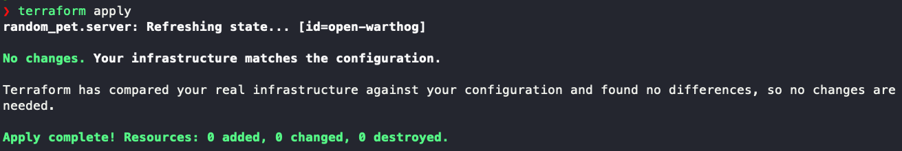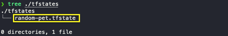 ํ์ฌ ํ ๋ผํผ ๋ฆฌ์์ค๋ฅผ tfstates/random-pet.tfstate ์ state(์ํ) ๋ฅผ ์ ์ฅํ๊ณ ์์ฃ .
