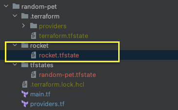 ๊ทธ์น๋ง tfstates ๋๋ ํฐ๋ฆฌ๊ฐ ์๋, rocket ๋๋ ํฐ๋ฆฌ๋ก ๋ณ๊ฒฝํ๊ณ ์ถ๊ณ ์ด์ฐธ์ random-pet.tfstate ๊ฐ ์๋ rocket.tfstate ๋ก ํ์ผ ์ด๋ฆ๋ ๋ณ๊ฒฝํ๊ณ ์ถ์ต๋๋ค.