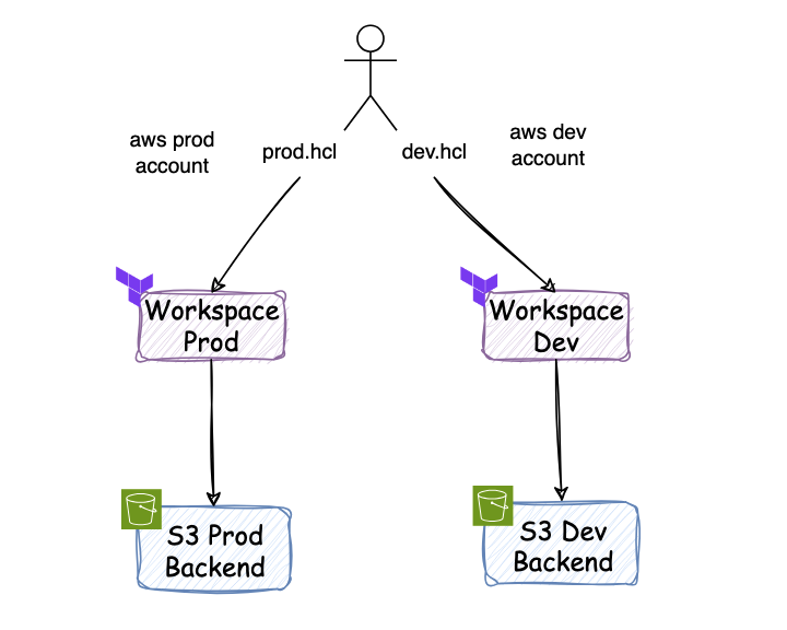 ๋ง์ฐฌ๊ฐ์ง๋ก workspace ์ Multi S3 Backend with AWS Cross-Account ๊ธ์์ ๋ค๋ฃจ๊ธด ํ ๊ฑฐ์ง๋ง, ๋ง๋ณด๊ธฐ ํด๋ณด๋ฉด ์๋์ ๊ฐ์ด ์งํ๋ฉ๋๋ค.