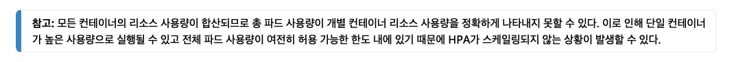 ์์๋ ์ ์ ๊ณต์๋ฌธ์์์ ๋งํ๋ฏ, ๋ฉํธ๋ฆญ ๊ฐ์ด ์ ํํ๊ฒ ๊ณ์ฐ๋์ง ์๊ธฐ ๋๋ฌธ์ ๋๋ก๋ HPA ๊ฐ ์ค์ผ์ค๋ง๋์ง ์๋ ์ํฉ์ด ๋ฐ์ํ ์๋ ์์ต๋๋ค.