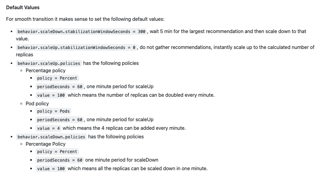 autoscailing/v2 ์ behavior ์ต์ ์ ํตํด ScaleUp ์๋ ์ฌ์ฉํ ์ ์์ต๋๋ค. ๋ค์์ ๋ค๋ฃน๋๋ค.
