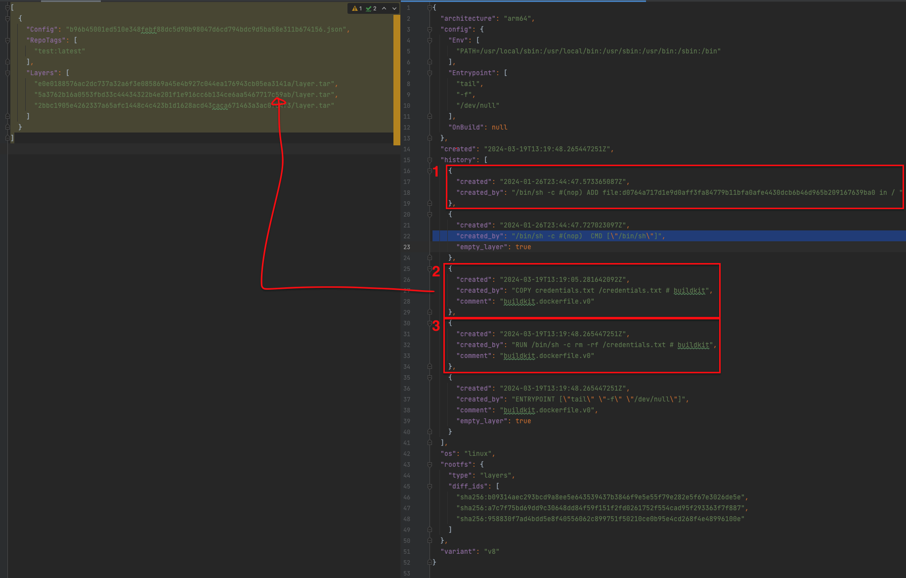 ์์ OverlayFS ๋ฅผ ์ดํด๋ดค๋๋ฐ ์ด๋ ์ ๋ ๋์น๋ฅผ ์ฑ์ จ์ ๊ฒ๋๋ค. Dockerfile ๋ด credentials ํ์ผ์ ์ถ๊ฐ(COPY) ํ๋ ์์ ๋ ์ด๋ฏธ์ง ๋ด์์ ๋ ์ด์ด๋ก ์กด์ฌํ๊ฒ ๋๋๋ฐ, ๋ ์ด์ด๋ ๊ฒฐ๊ตญ ํด๋๋ก ์กด์ฌํ๊ธฐ ๋๋ฌธ์ rm -rf ๊ณผ ๊ฐ์ ๋ช ๋ น์ด๋ฅผ ์ฌ์ฉํด์ ์ง์ฐ๋๋ผ๋ COPY ๋ ์ด์ด์๋ ์ฌ์ ํ credentials ํ์ผ์ด ์กด์ฌํ ๊ฒ์ด๊ณ , ๋ ์ด์ด ํ๋ํ๋๋ฅผ ์ง์ ์ดํด๋ณผ ์ ์์ต๋๋ค.