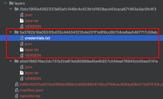 ํด๋น ๋ ์ด์ด(ํด๋)๋ก ์ด๋ํ ํ layer.tar ์ ์์ถ์ ํ์ด์ฃผ๋ฉด credentials.txt ๊ฐ ๋์ค๋ ๊ฑธ ์ ์ ์๊ณ ,