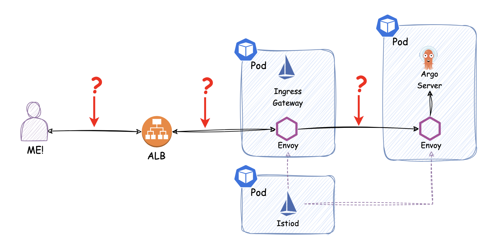 Istio ๋ ์๋์๊ณ , AWS ALB ๋ ์๋์๊ณ , ์๋น์ค ๋๋ ์ ํ๋ฆฌ์ผ์ด์ ๋ ์๋.. ์ฟ ๋ฒ๋คํฐ์ค ์ค์ ์ ๋ฌธ์ ์๋ ๊ฑฐ์ฃ .